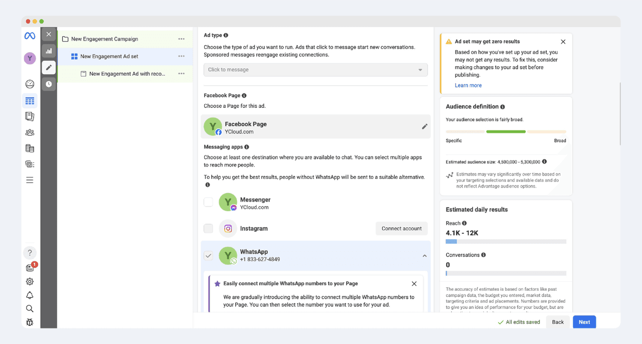 Ad type: Select "Click to message"