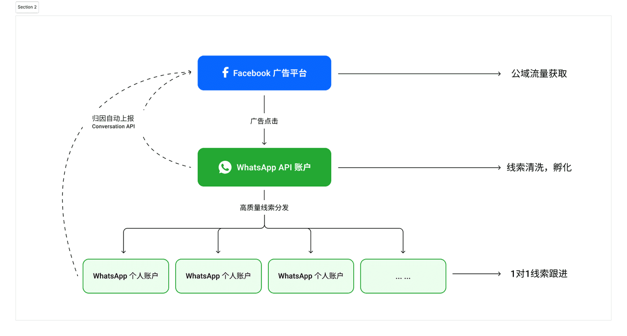 1. 通过 WhatsApp 个人号深度连接 对于高客单价业务,可将线索交给销售通过个人号进行一对一深度互动,建立强信任关系。