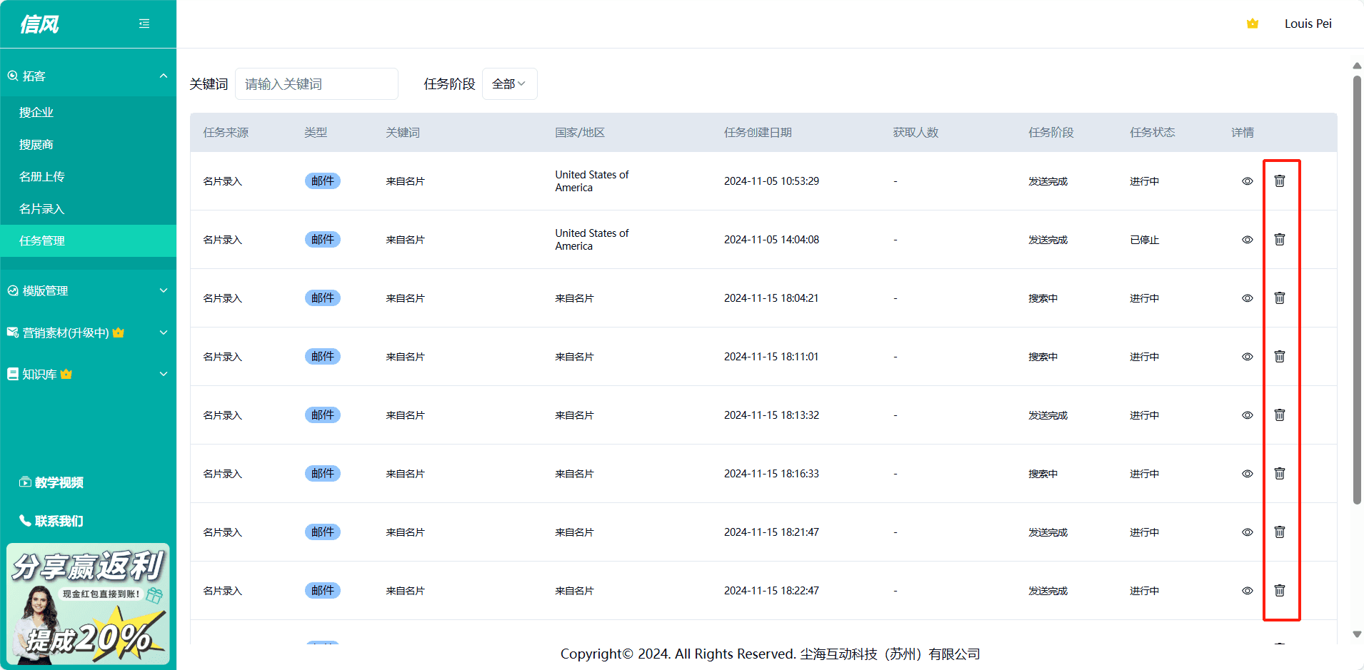 点击导航栏中的“任务管理”,进入任务列表界面。
