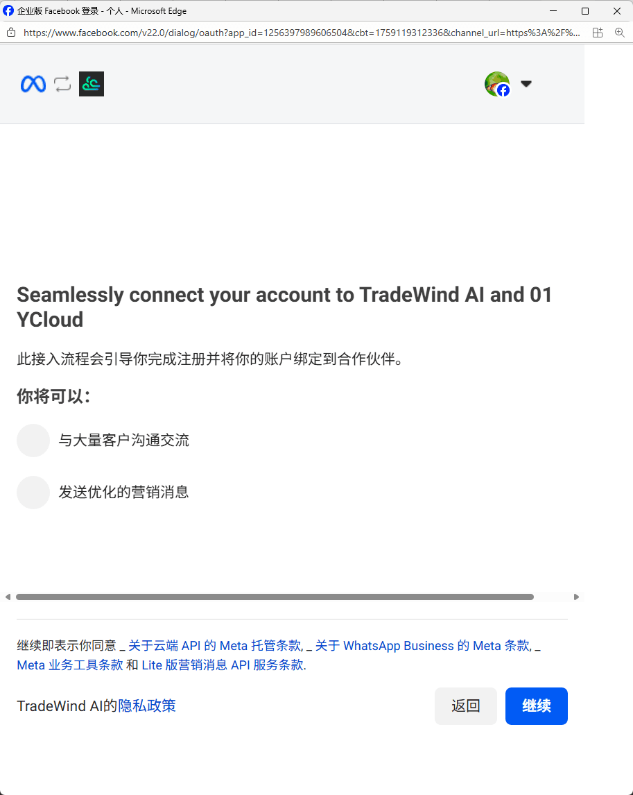 注意:请确保您的网络可以正常访问 Facebook 网站。